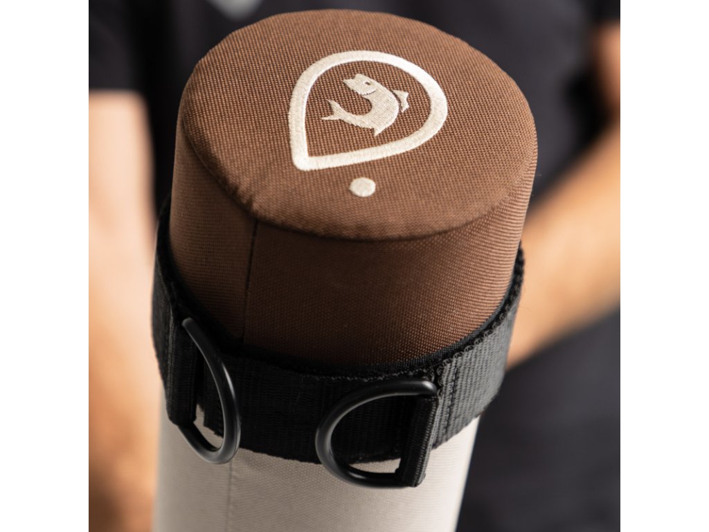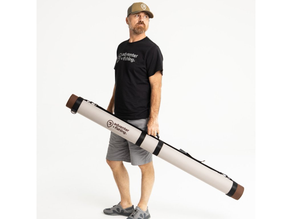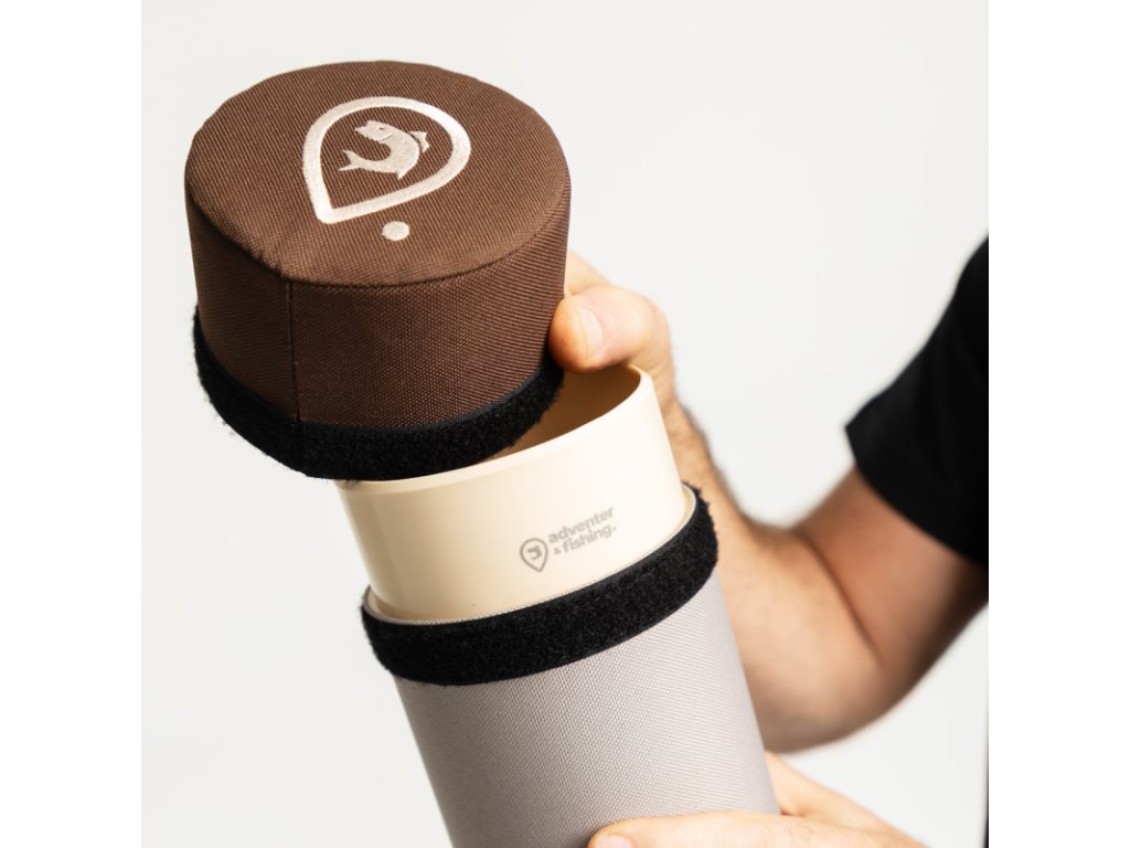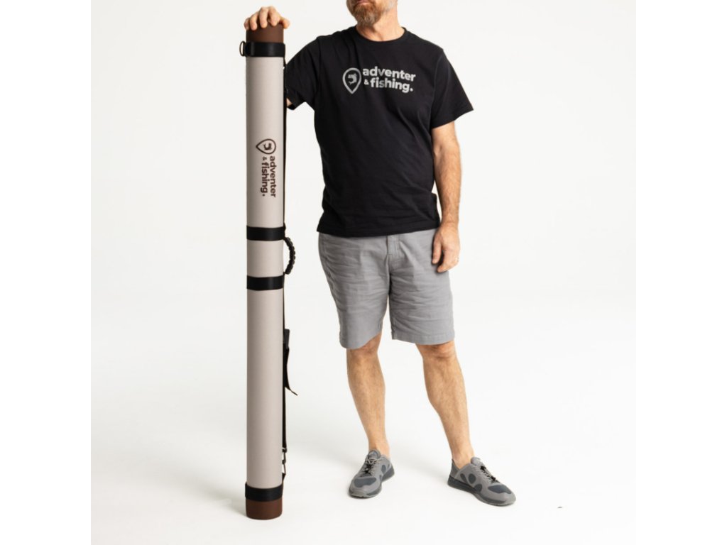 Trojvrstvový obal na prúty v béžovej farbe Beige s hnedými vekami a hnedým vyšívaným logom Adventer & fishing je ideálnou voľbou na ochranu vašich rybárskych prútov. Tento obal je navrhnutý pre maximálnu odolnosť a praktické použitie.
