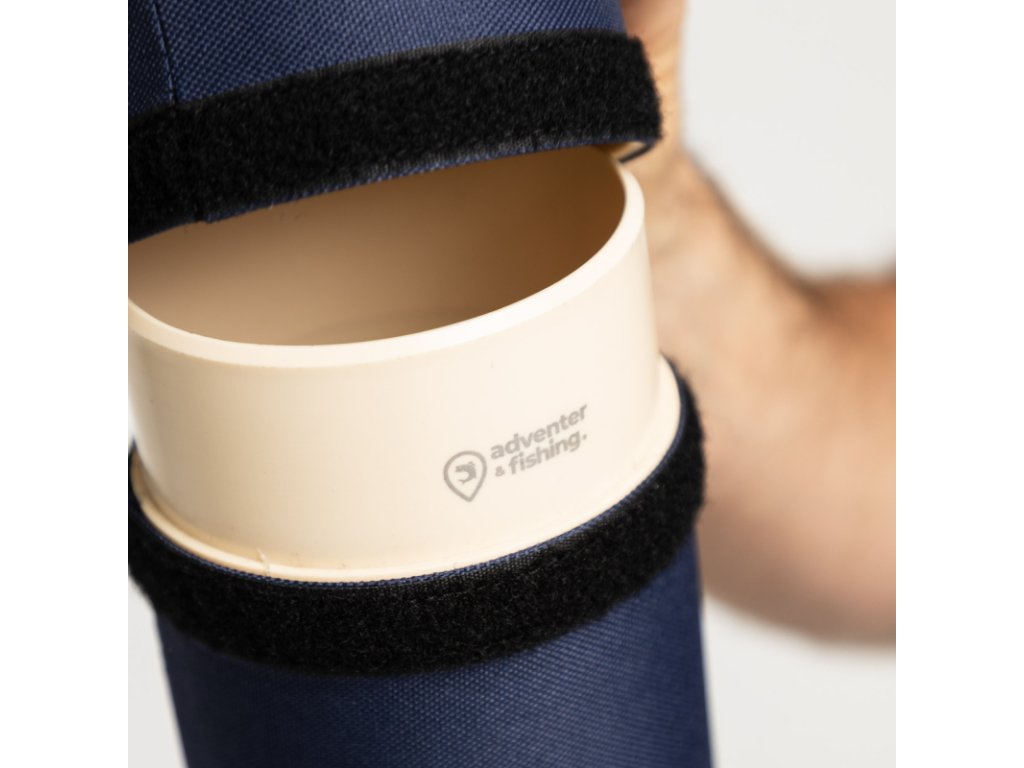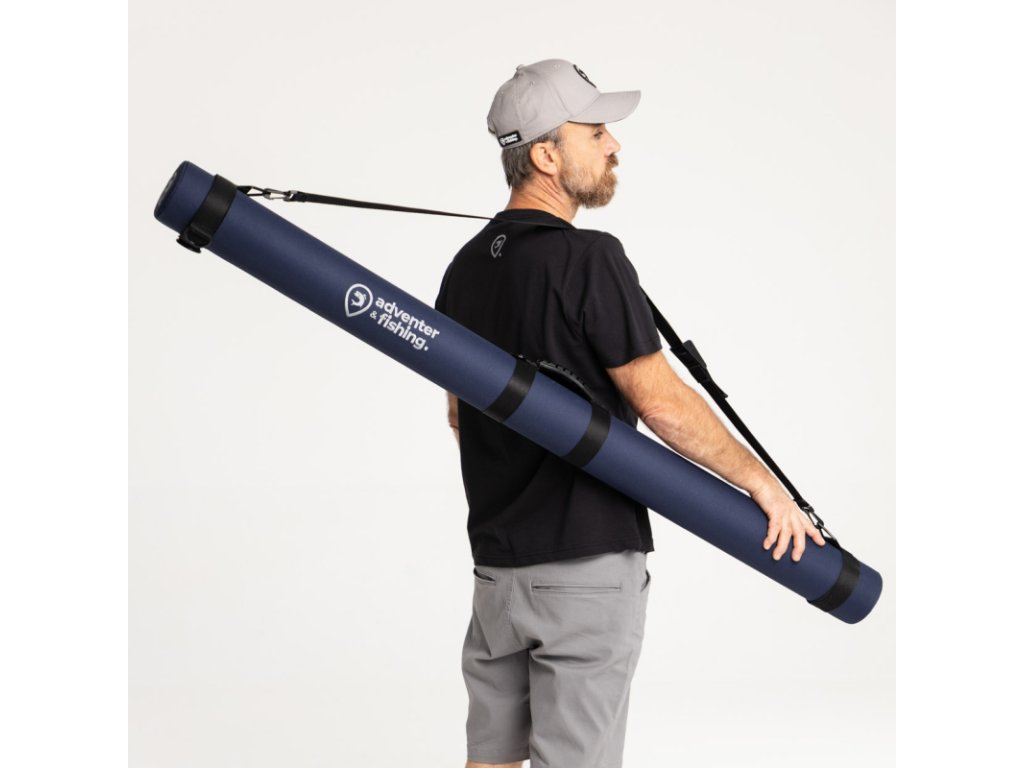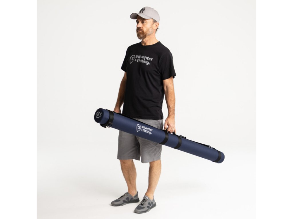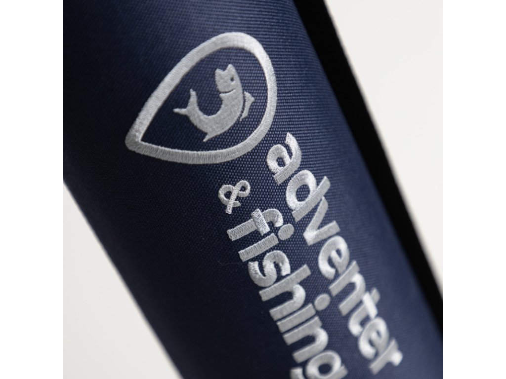 Trojvrstvový obal na prúty v tmavomodrej farbe Dark Blue s bielym vyšívaným logom Adventer & fishing je ideálnym riešením na ochranu vašich rybárskych prútov. Tento obal kombinuje robustnú ochranu, praktické vlastnosti a možnosť personalizácie.
