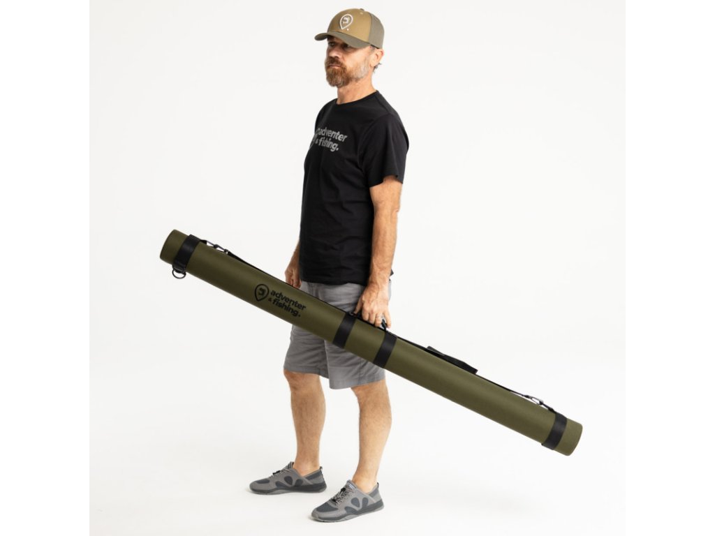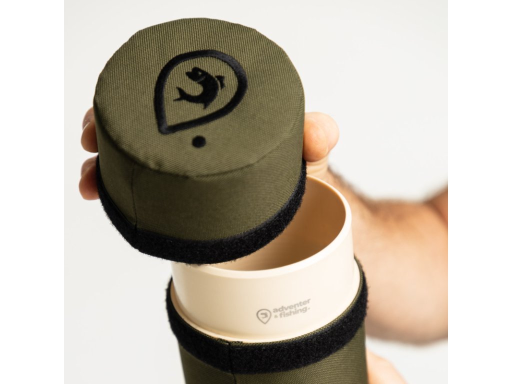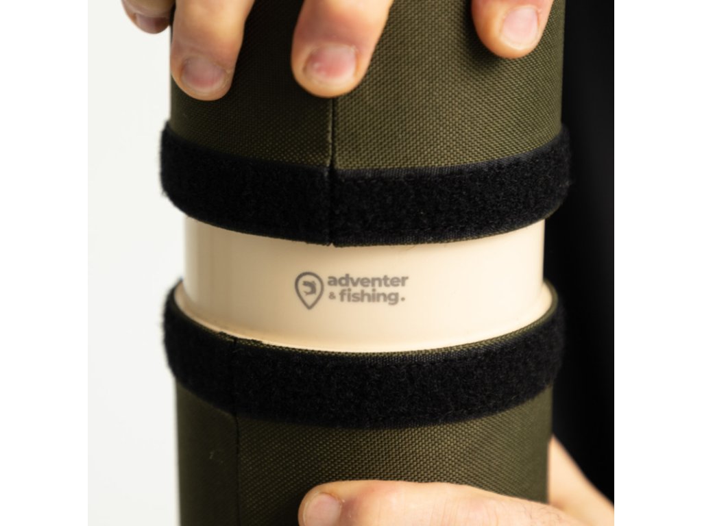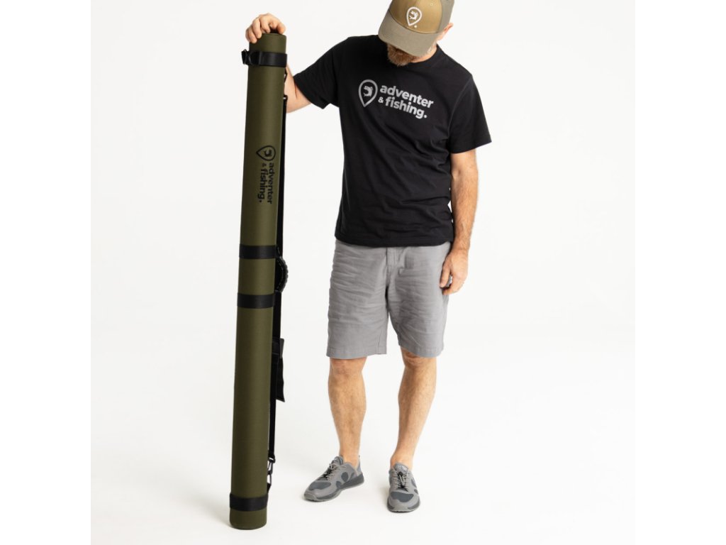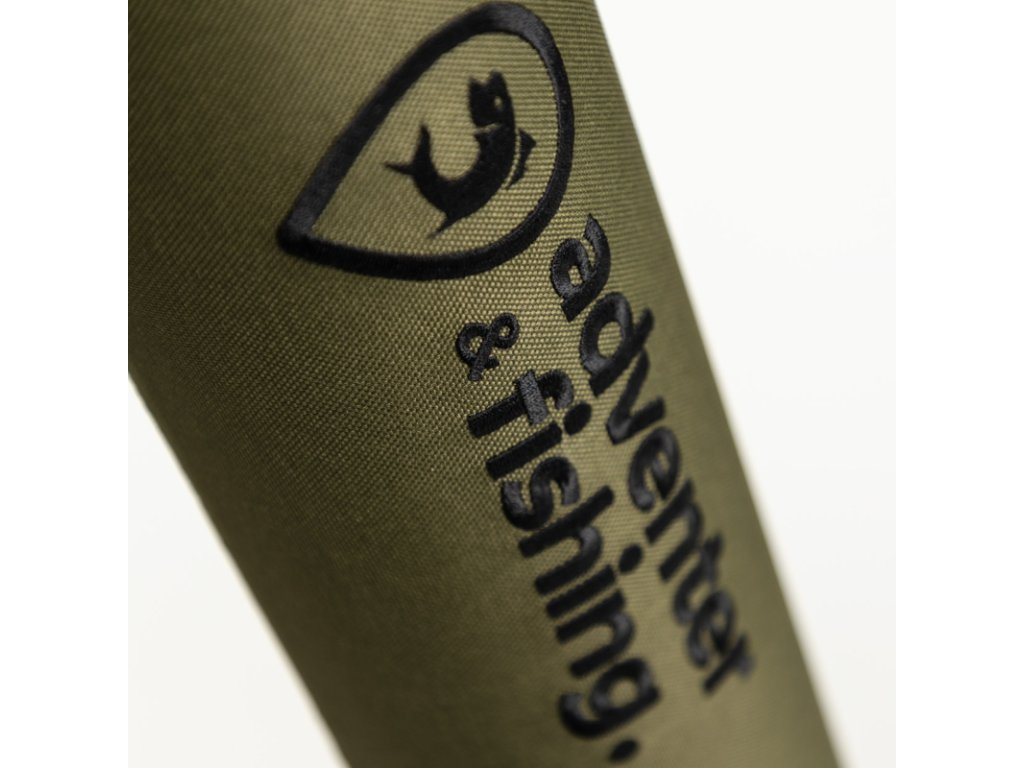 Trojvrstvový obal na prúty v zelenej farbe Khaki s čiernym vyšívaným logom Adventer & fishing je ideálnym riešením na ochranu a prenos vašich rybárskych prútov. Tento odolný obal je navrhnutý tak, aby vyhovoval aj náročným podmienkam, a poskytuje vynikajúcu ochranu a praktické vlastnosti.