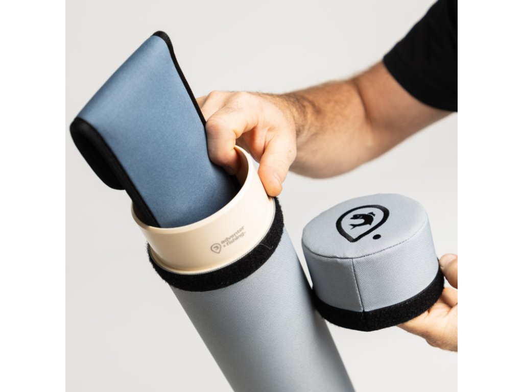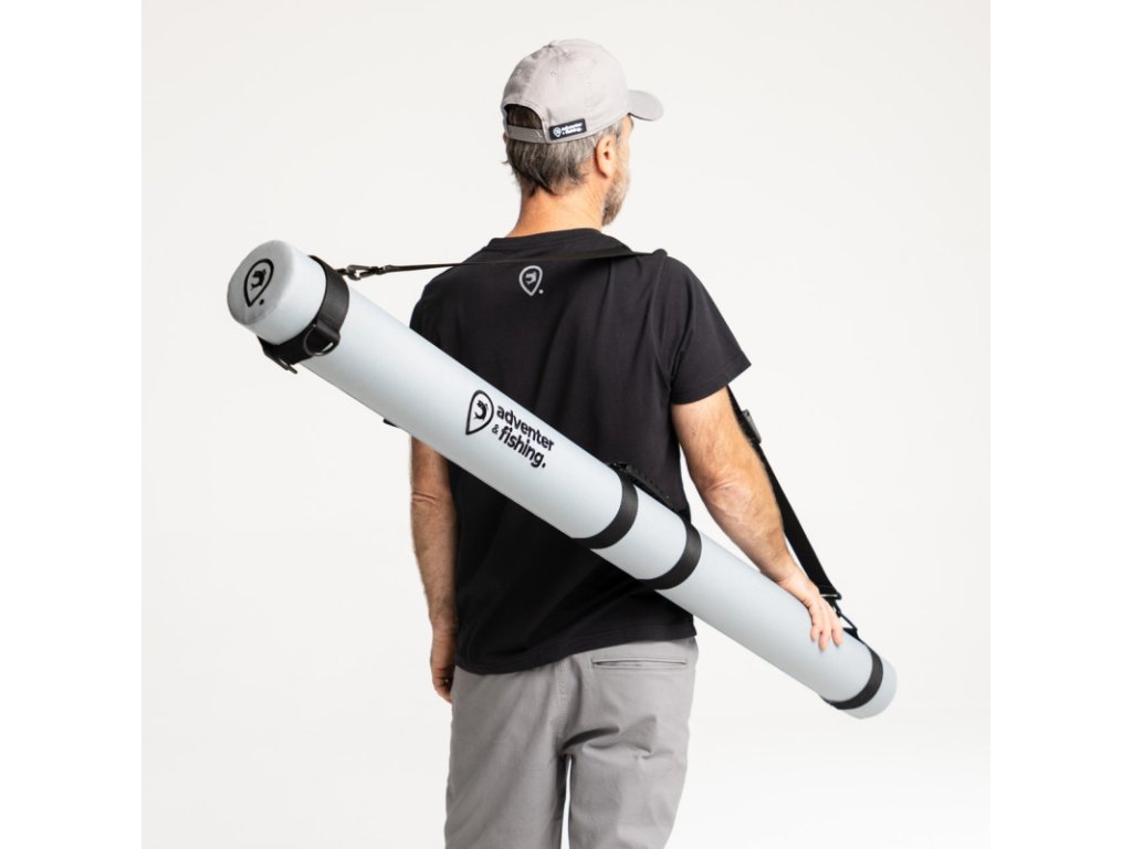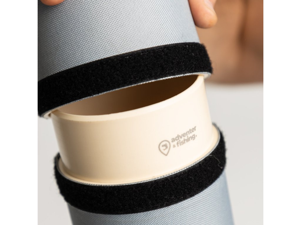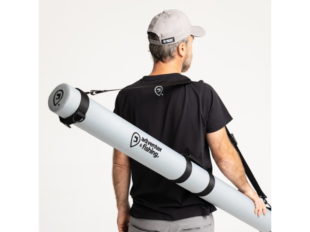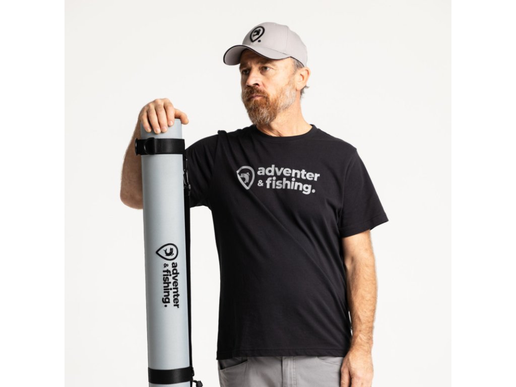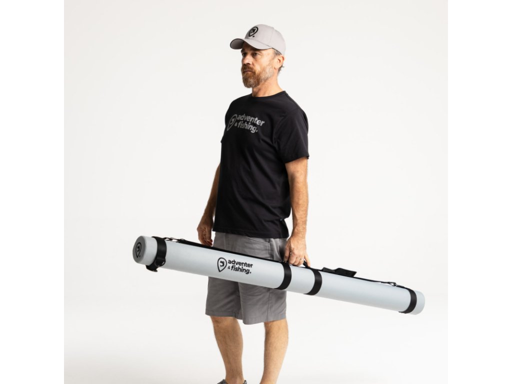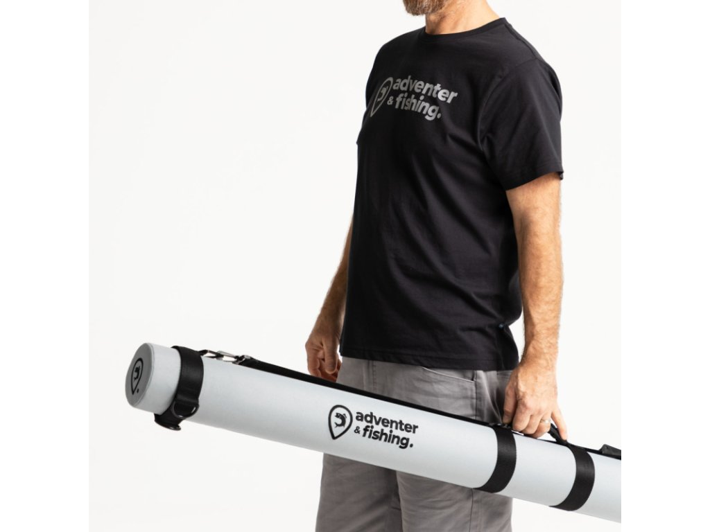 Trojvrstvový obal na prúty v šedej farbe Grey s čiernym vyšívaným logom Adventer & fishing je navrhnutý pre maximálnu ochranu vašich rybárskych prútov. Tento odolný obal kombinuje pevnosť s praktickosťou a prispôsobením.