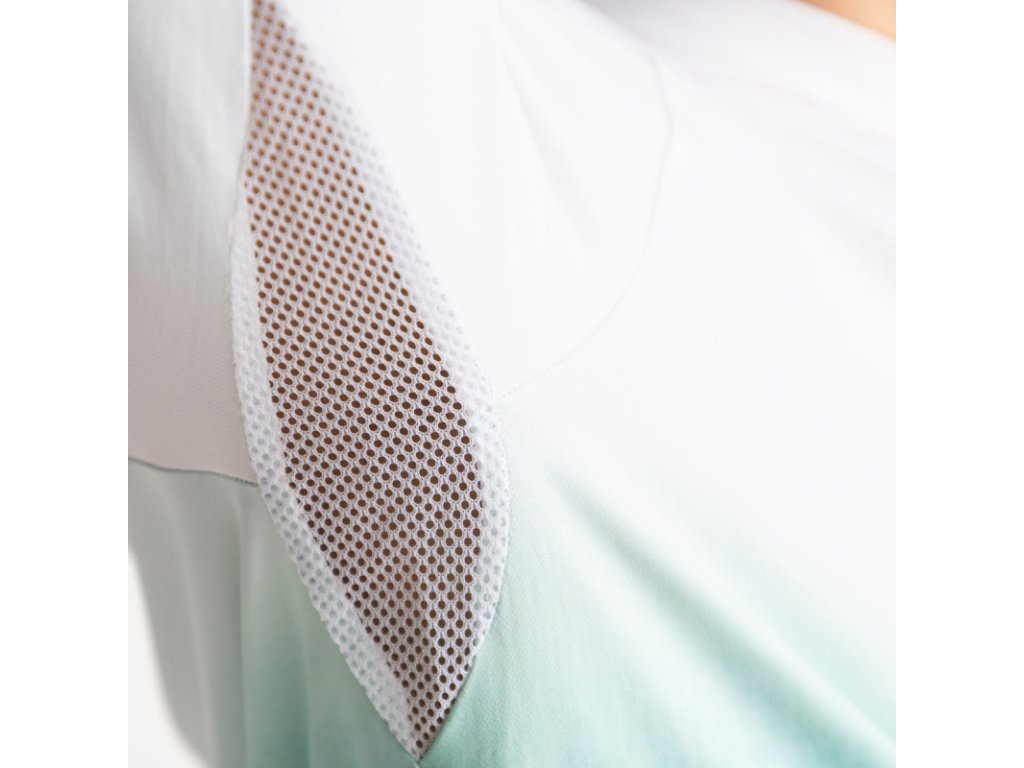 Pre zaistenie maximálneho komfortu je látka v oblasti podpazušia obohatená o ventiláciu, ktorá napomáha lepšej cirkulácii vzduchu a odvádza vlhkosť. Vďaka svojej pružnosti a rýchloschnúcim vlastnostiam je toto tričko ideálnou voľbou pre aktívne dni strávené pri vode.
