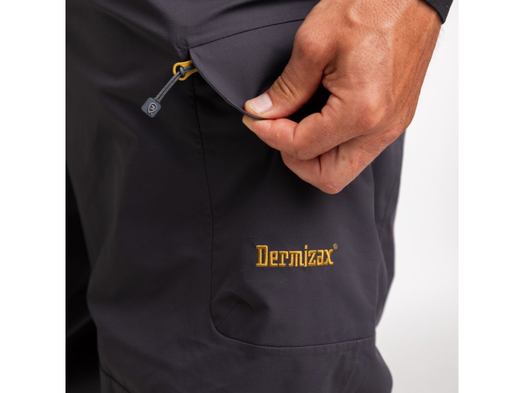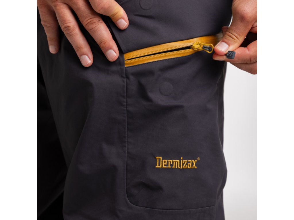 Nohavice sú vyrobené z trojvrstvového membránového materiálu Dermizax od renomovanej japonskej spoločnosti TORAY, ktorý ponúka vysokú vodeodolnosť a priedušnosť vďaka chytrej neporéznej membráne.