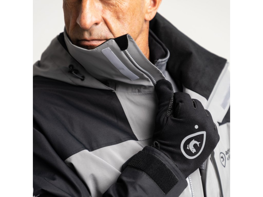 Pánske rybárske rukavice v čiernej farbe z pružného, zároveň však pevného materiálu. Špeciálna protišmyková úprava uľahčí manipuláciu s veľkými sladkovodnými rybami.
