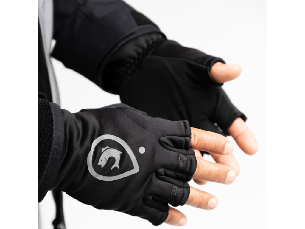 Rukavice sú vyrobené z pružného a odolného materiálu, ktorý je zároveň vetruvzdorný a zateplený, čím zaisťuje, že vaše ruky zostanú v teple a suchu. Otvorené končeky prstov poskytujú maximálnu manévrovateľnosť, čo je nevyhnutné pri manipulácii s náradím a úlovkom. Reflexné prvky na rukaviciach pridávajú na bezpečnosti tým, že zvyšujú vašu viditeľnosť za šera alebo v zlých svetelných podmienkach.