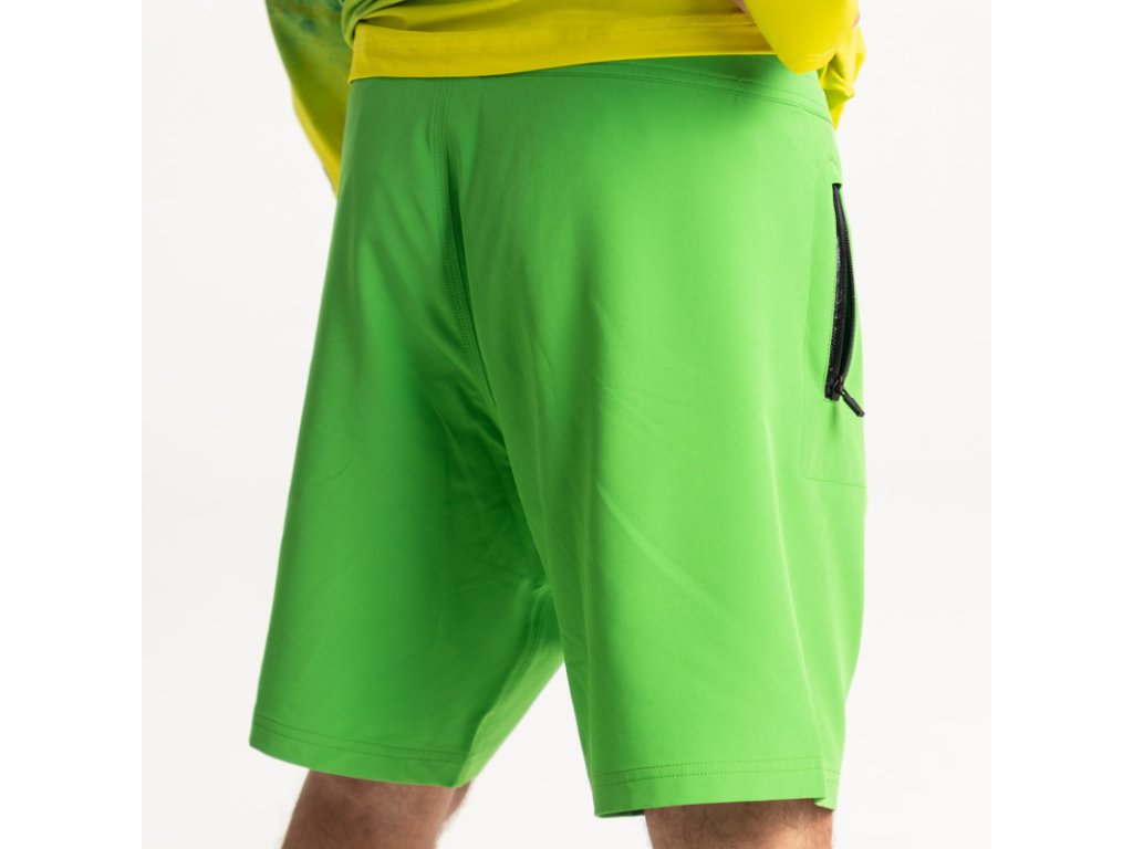 Pánske kraťasy Adventer & fishing v zelenej farbe Green s modrým nápisom sú navrhnuté pre rybárčenie v teplých krajinách, ale skvele sa hodí aj pre vodné a plážové športy alebo prechádzky v prírode av meste. Vďaka svojmu ultraľahkému materiálu, ktorý je rýchloschnúci, pružný, vodoodpudivý a priedušný, poskytujú maximálne pohodlie a voľnosť pohybu aj v náročných podmienkach.
