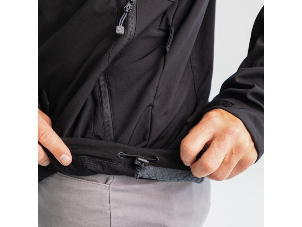 Vysoký golier chráni pred vetrom a dažďom, au brady je zips opatrený ochranou proti poškriabaniu. Anatomicky tvarované rukávy a vetranie v podpazuší s krytým YKK zipsom a ľahkou sieťovinou zaisťujú pohodlie a odvetrávanie. Sťahovacie manžety na suchý zips na rukávoch umožňujú jednoduché prispôsobenie.