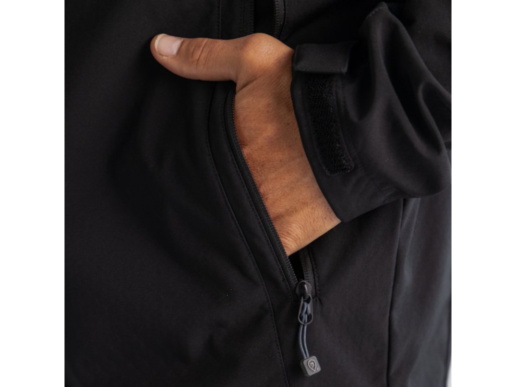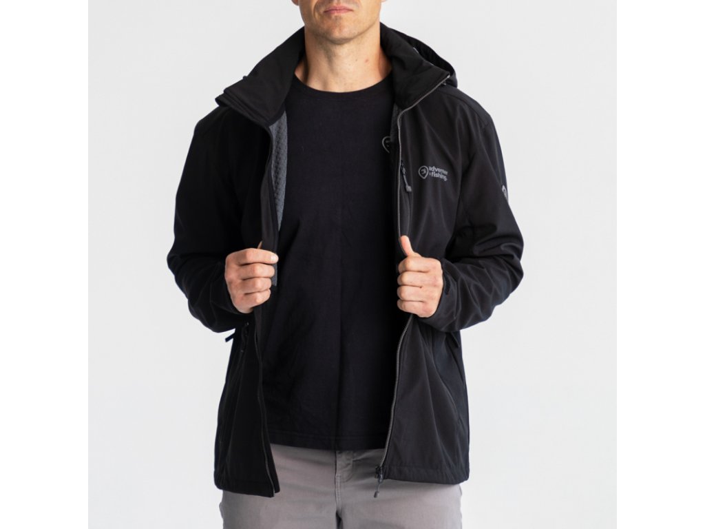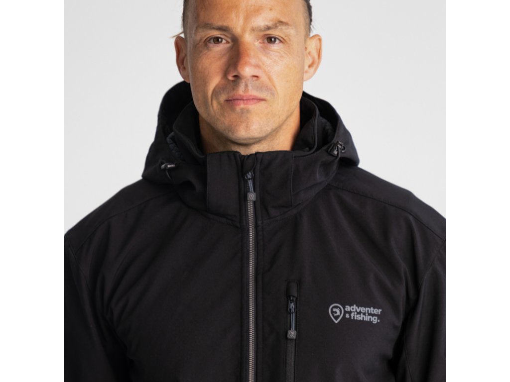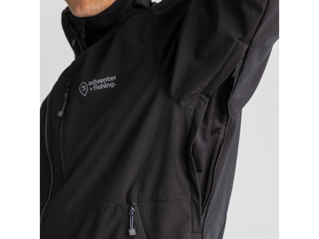 Softshellová bunda Black v elegantnej čiernej farbe je ideálnym spoločníkom pre všetky outdoorové aktivity. Vnútorná časť bundy je počesaná jemným fleecom s 3D hexagónovými vzormi, ktoré poskytujú lepšiu izoláciu a efektívny odvod vlhkosti. V bunde sú taktiež umiestnené ľahké sieťovinové vačky pre ďalšie úložné možnosti. Šedá logá Adventer & fishing na ramene a chrbte dodávajú bunde štýlový vzhľad. Celkový dizajn je začistený textilnou lemovacou páskou.