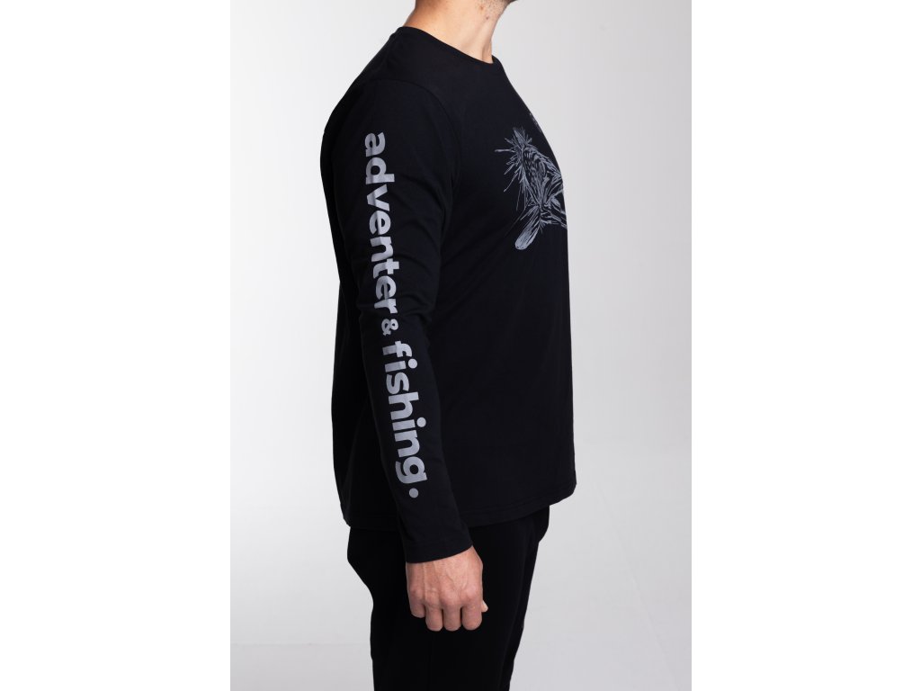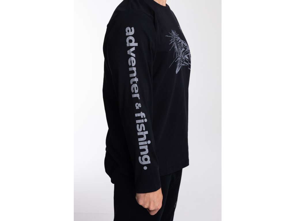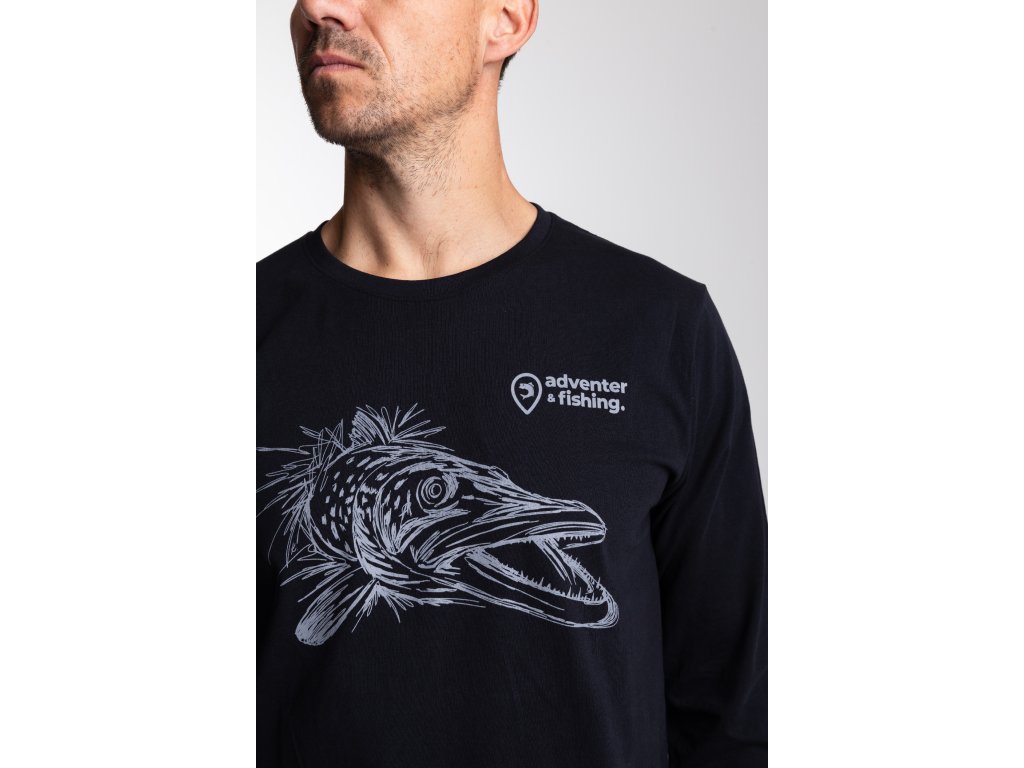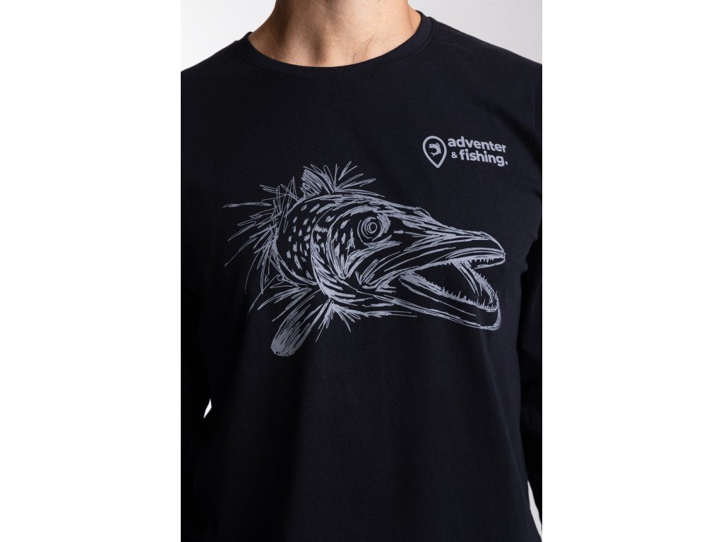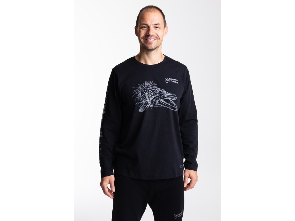Pánske bavlnené tričko Adventer Black Pike s dlhým rukávom v čiernej farbe je vyrobené zo 100% jemnej bavlny (fine cotton), ktorá zaisťuje maximálne pohodlie po celý deň. Vďaka voľnému strihu umožňuje tričko neobmedzený pohyb, čo ho robí ideálnym ako pre šport, tak aj pre ležérne každodenné nosenie. Limitovaná edícia s potlačou šťuky je dokonalým dizajnovým prvkom pre každého nadšenca v love šťúk a dravcov celkovo.